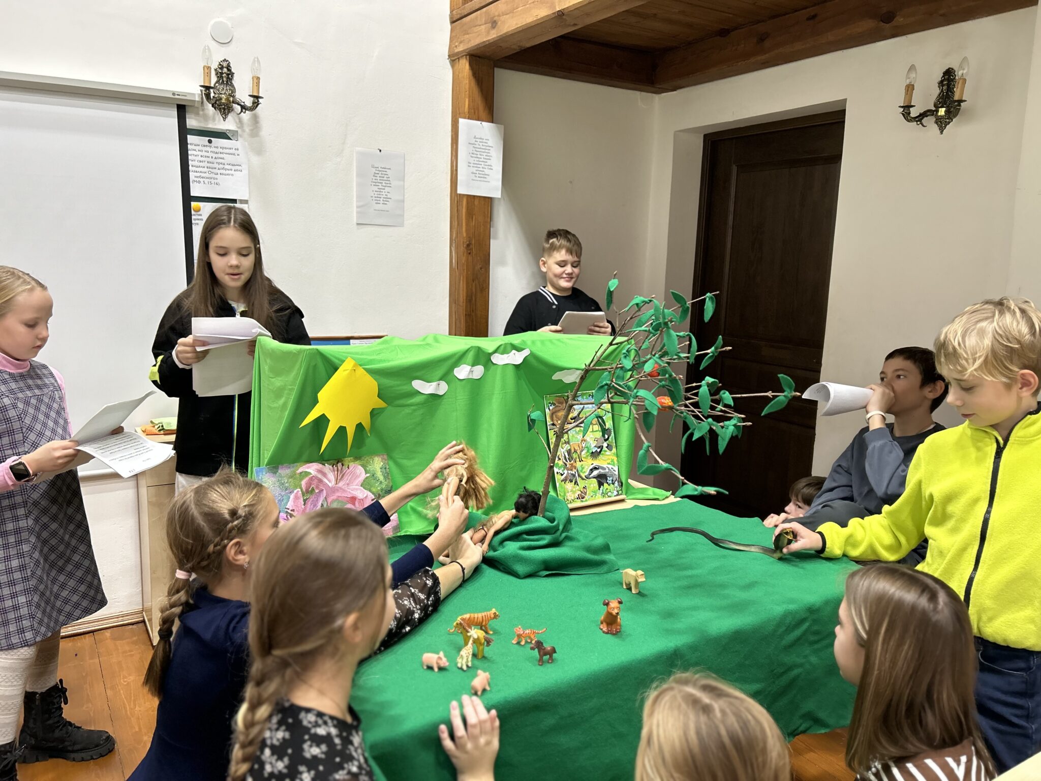 В 4 классе разыграли кукольную сценку, посвященную сотворению первых людей, грехопадению.