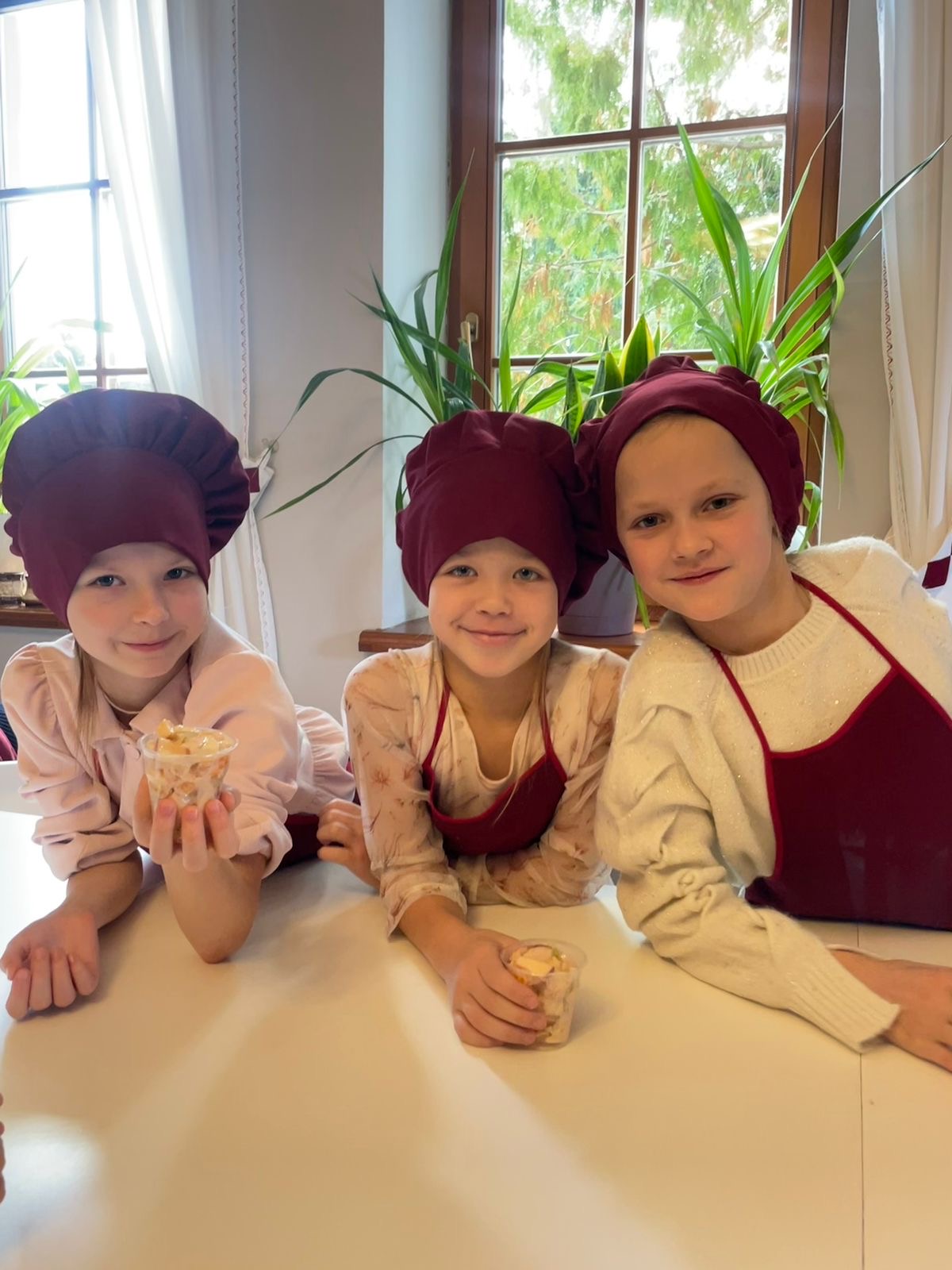 На кулинарном мастер классе дети приготовили фруктовый салат.